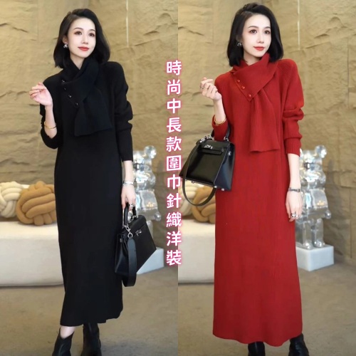 圍巾針織洋裝